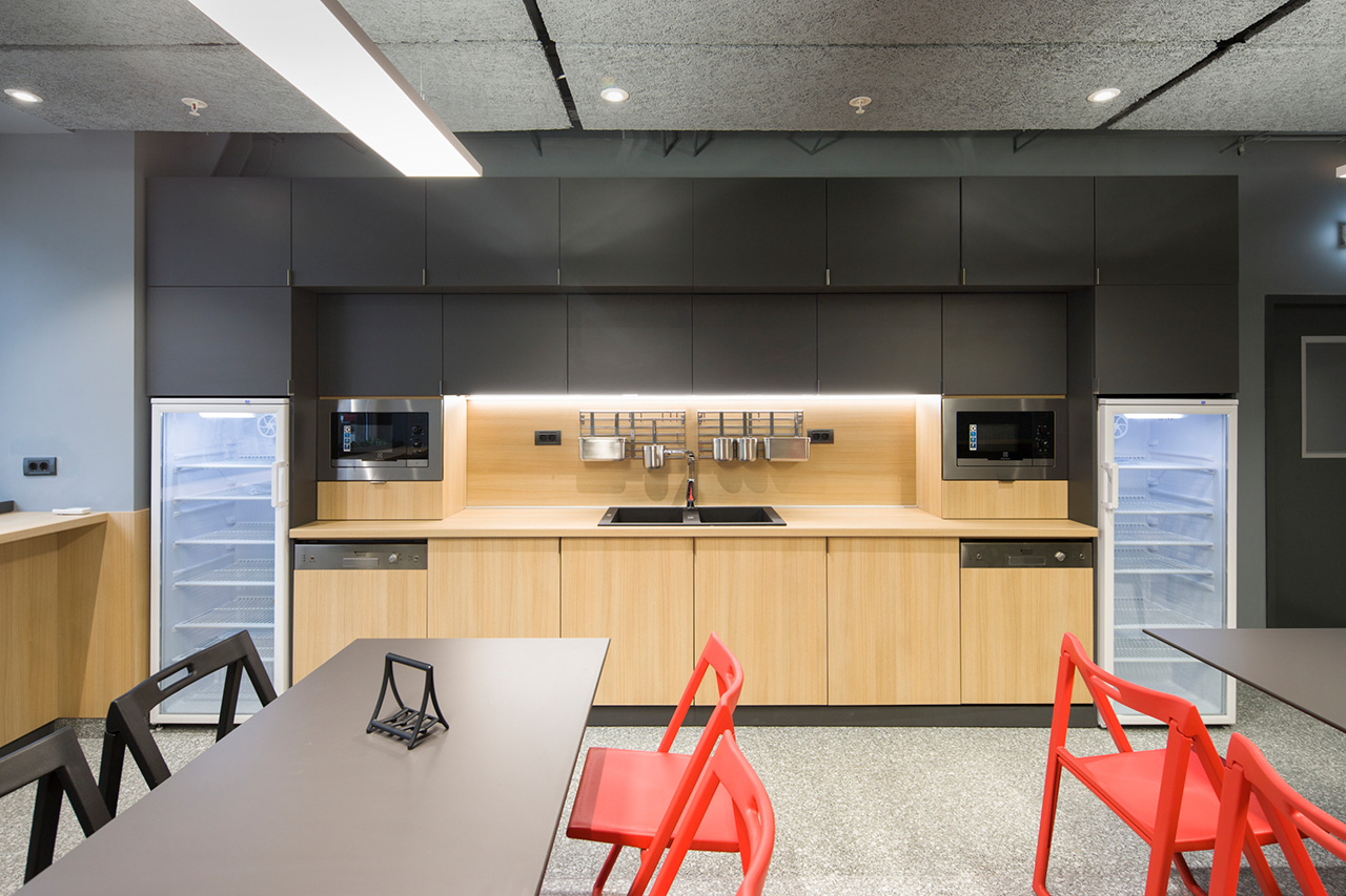 Întreaga compartimentare ține cont de lumina naturală, ofierind spații primitoare unde se poate lucra atât individual cât și în echipă.